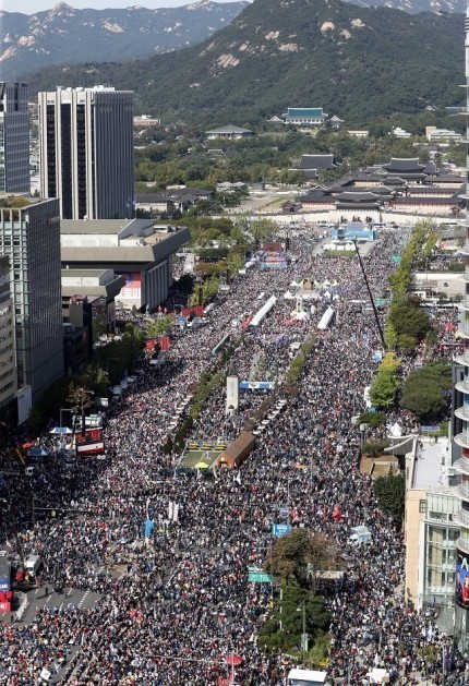 3. 개천절에 이어 한글날에도 서울 광화문광장 일대에 조국 법무부 장관의 퇴진을 요구하는 보수 단체들의 집회가 열림. 개천절 집회와 비교해 규모는 줄어든 모습. 자유한국당이 당 차원이 아닌 의원들의 개별 참여로 전환하고, 연속된 집회로 참가자들의 피로가 쌓인 탓으로 풀이됨.