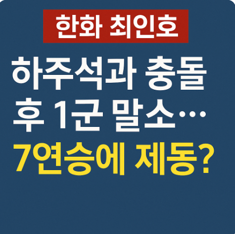 ⚾ 2025 한화 최인호, 하주석과 충돌 후 1군 말소
