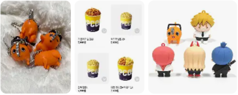 - 일본, 한국 모두 피규어·인형·열쇠고리 등 다양한 굿즈 출시 중